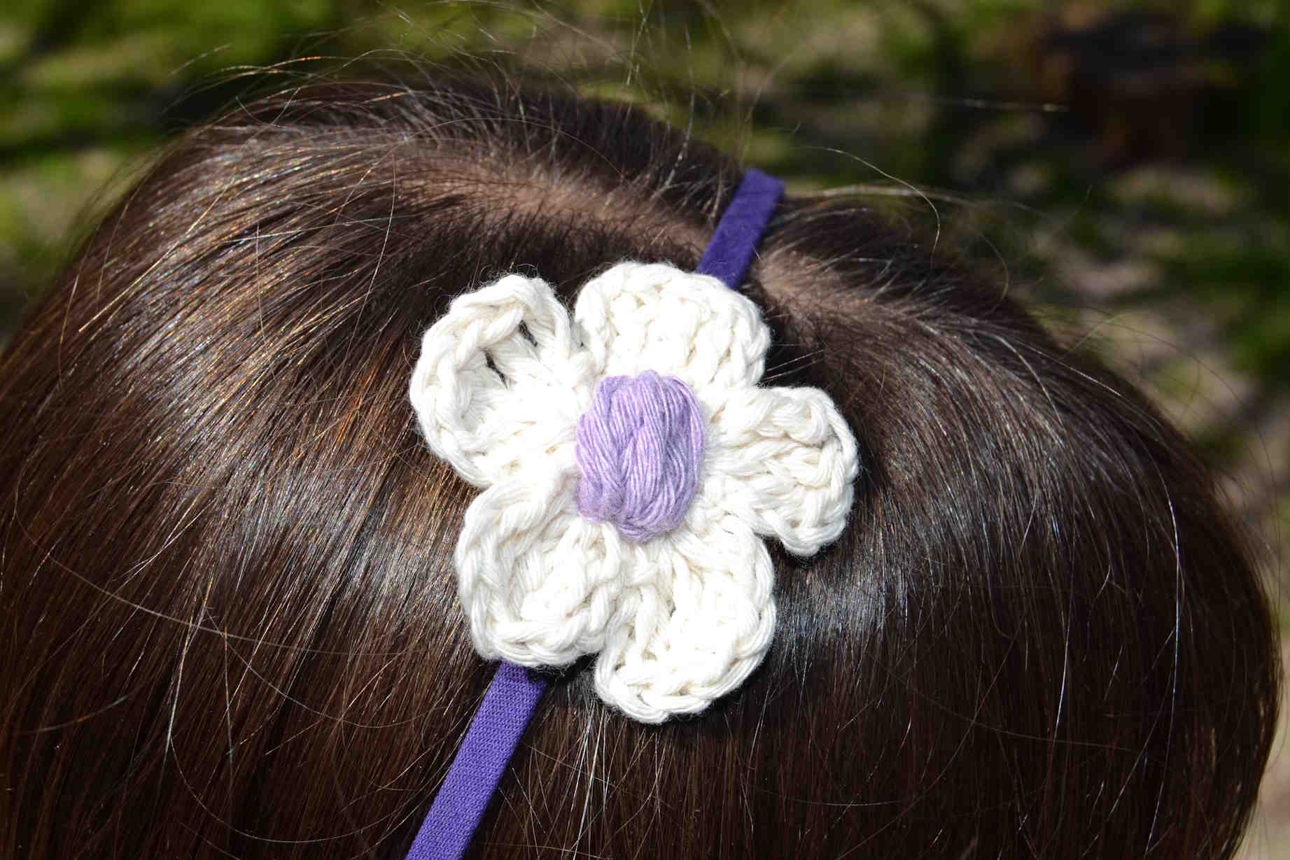 Esta suave flor de hilo de algodón, tejida a mano (crochet) de forma artesanal dará un toque delicado y original al cabello.