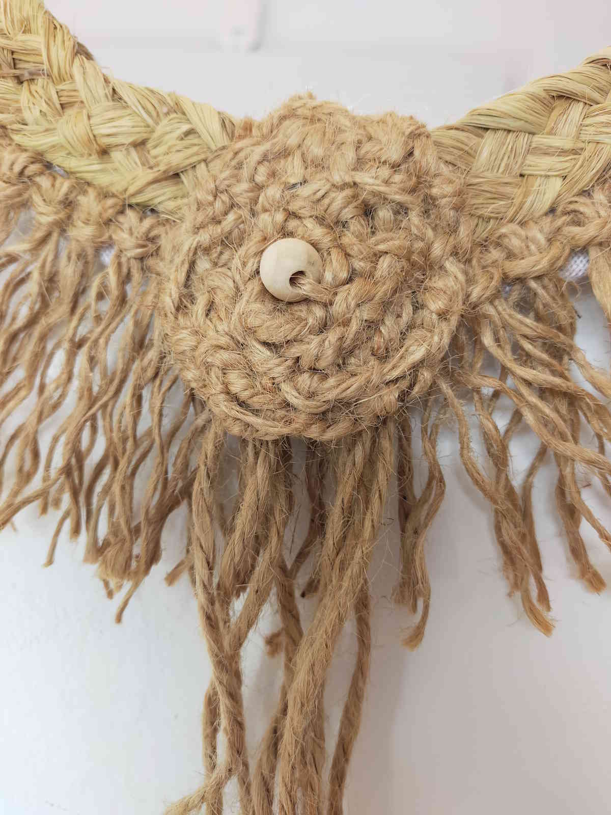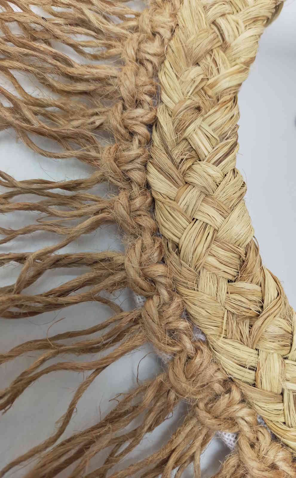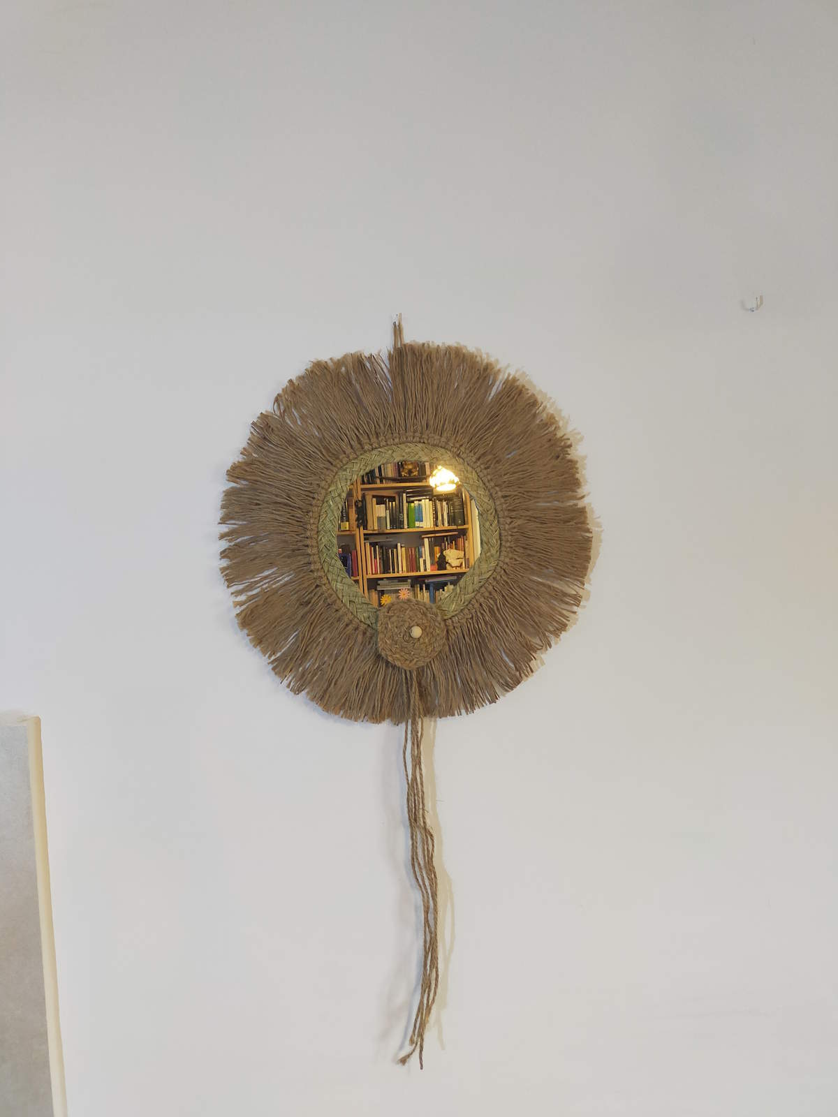 El espejo sol de yute puede reflejar tus amaneceres más inspiradores. Junto con la trenza de cinco ramales de esparto , que se cierra bajo el detalle de yute circular . Deja que llene de luz tu hogar.